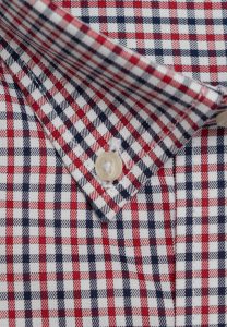 Checked shirt in regular line. Soft spread collar, round pocket and mitered cuff with two adjustable buttons and embroidered the brand logo. Six buttoned placket front and side pleats at the back.