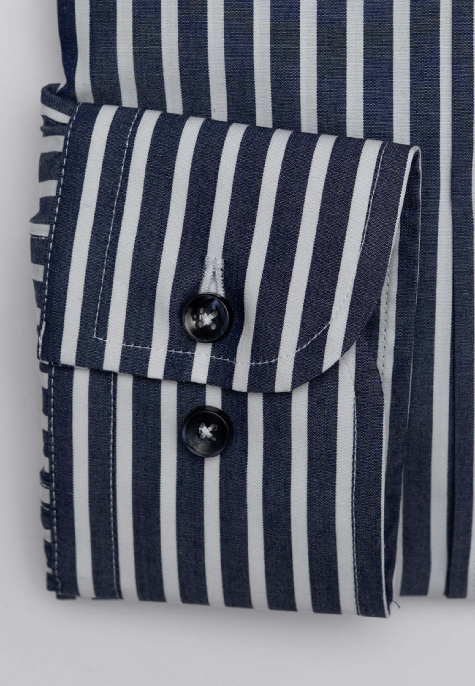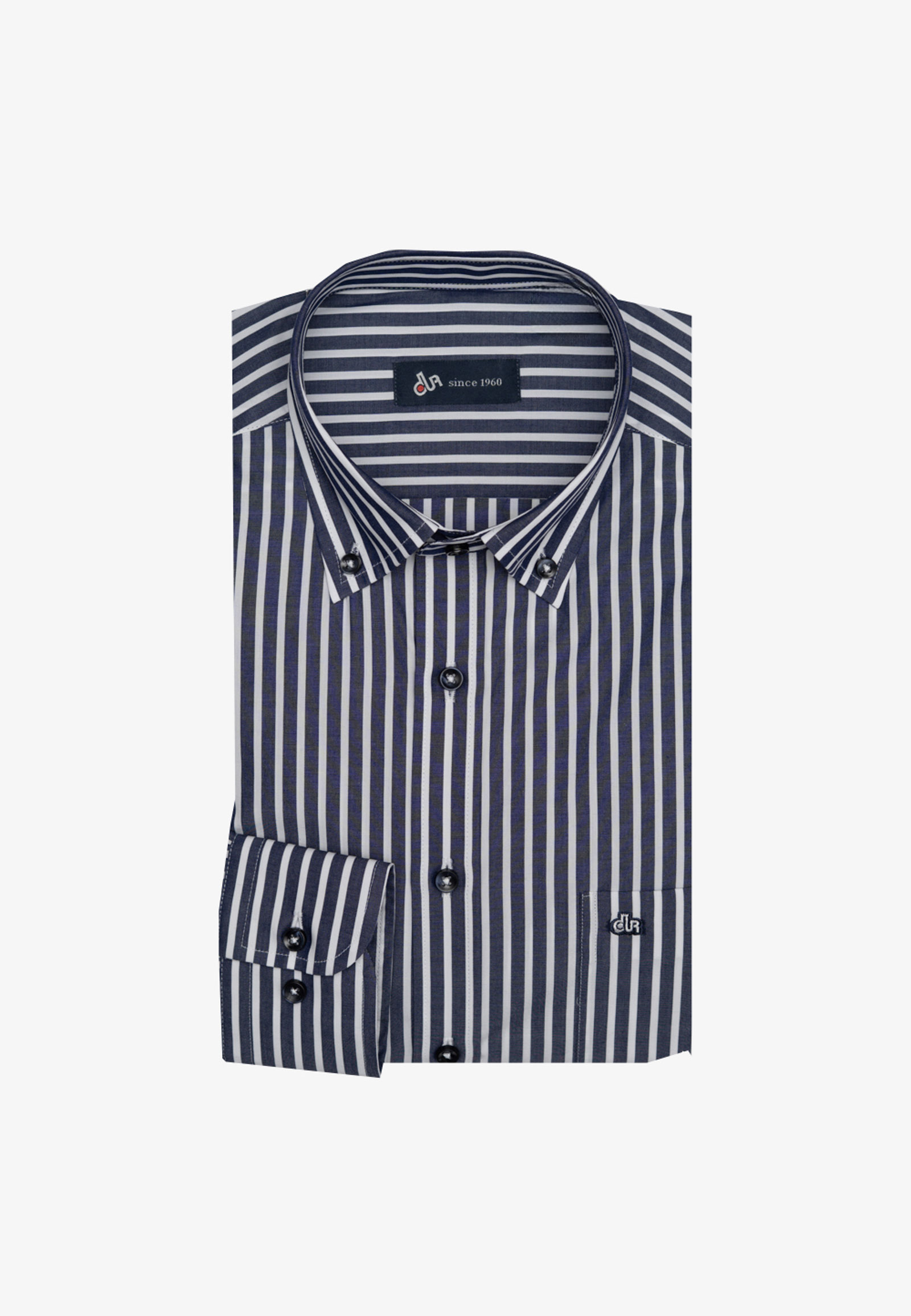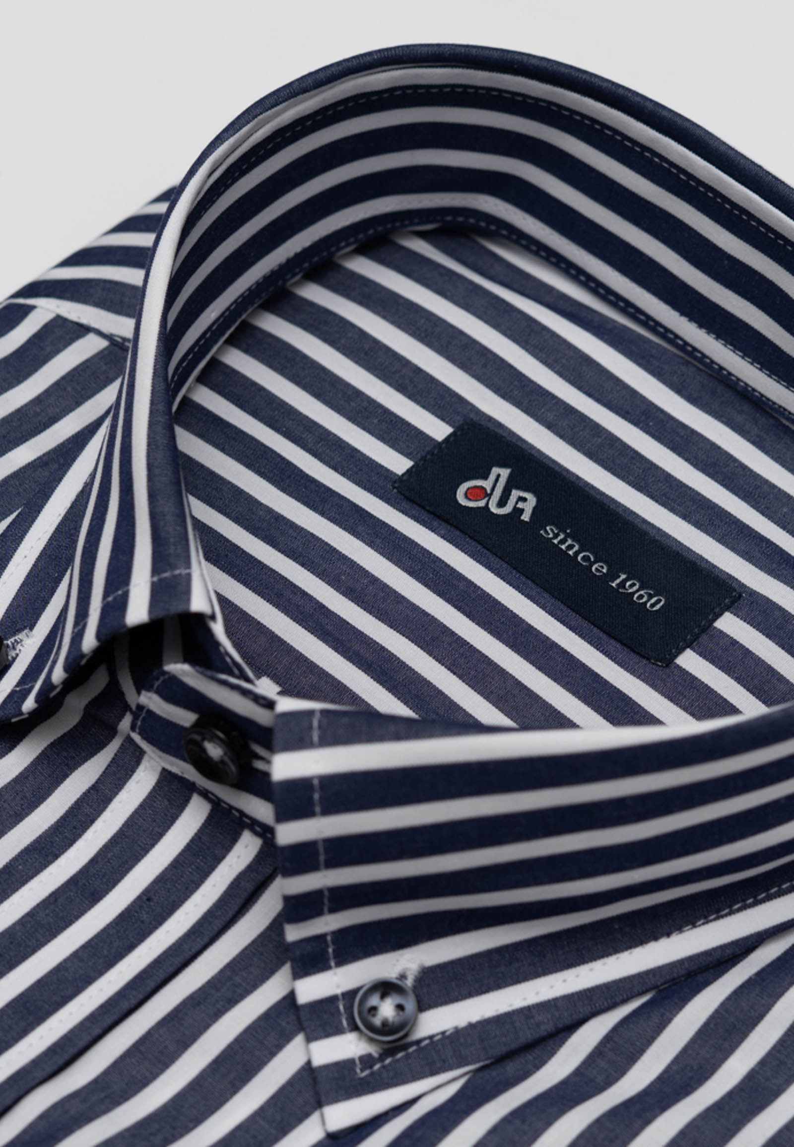 Striped shirt in regular line. Buttoned down collar, round pocket with embroidered the brand logo and round cuff with two adjustable buttons.