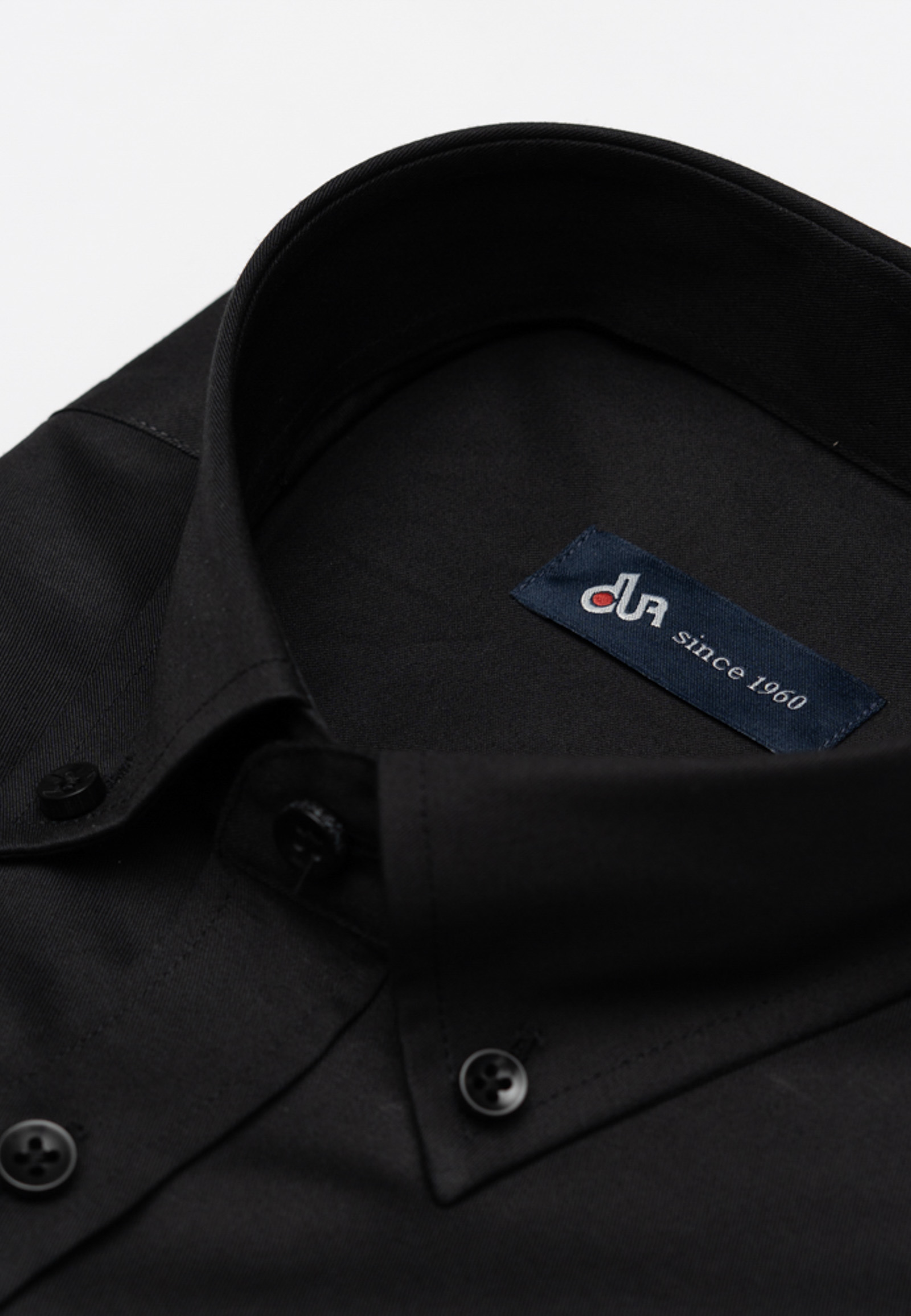 Twill two-ply cotton shirt in regular line. Buttoned down collar, round pocket with embroidered the brand logo and round cuff with two adjustable buttons.