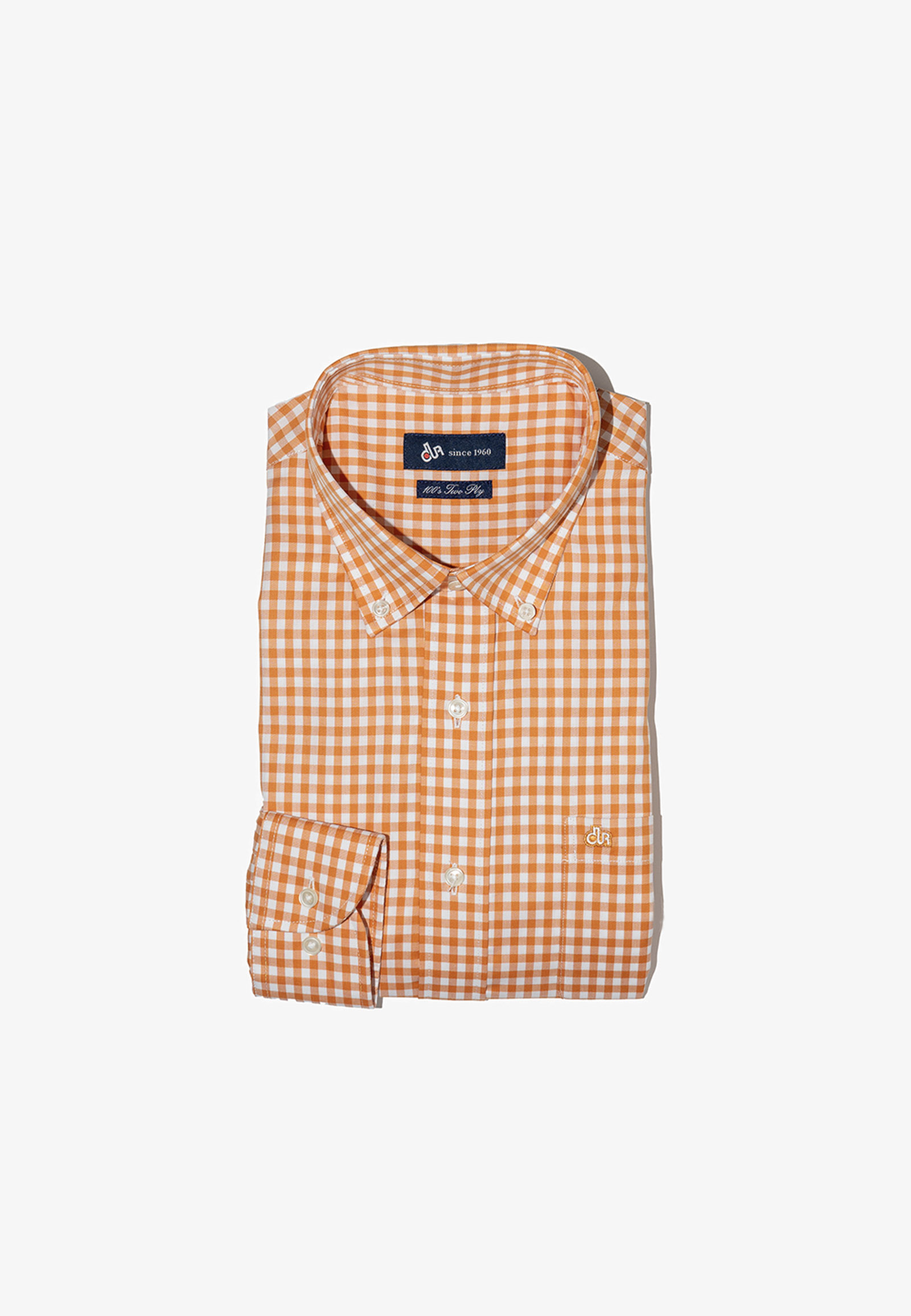 Checked shirt in regular line. Buttoned down collar, round pocket with embroidered the brand logo and round cuff with two adjustable buttons.