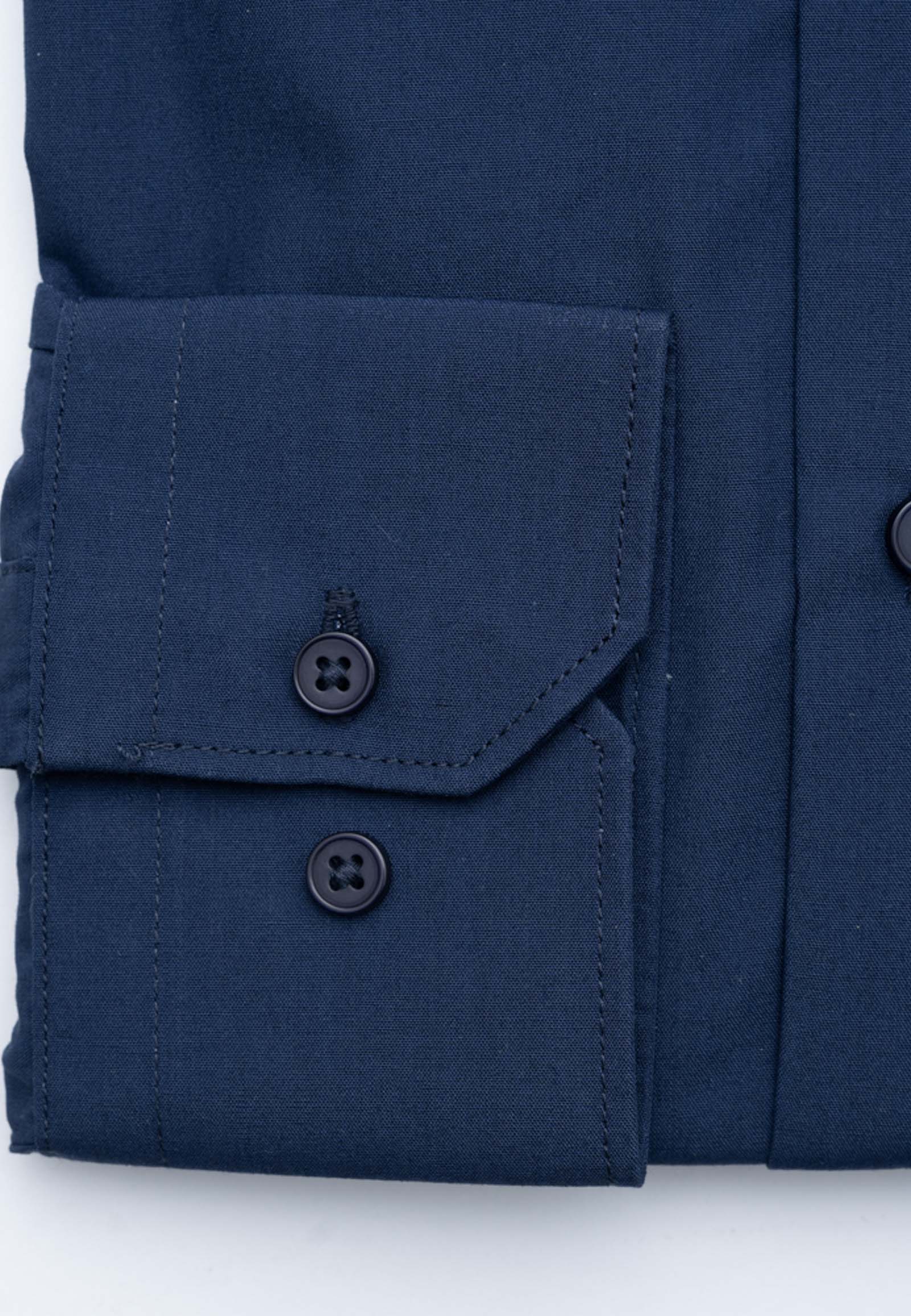 Poplin shirt in regular line. Soft pointed collar, seven buttoned placket front and mitered cuff with two adjustable buttons.
