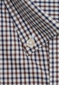 Checked shirt in regular-fit. Button down collar, mitered pocket with embroidered the brand logo, round cuffs and french front. Side pleats at the back.
