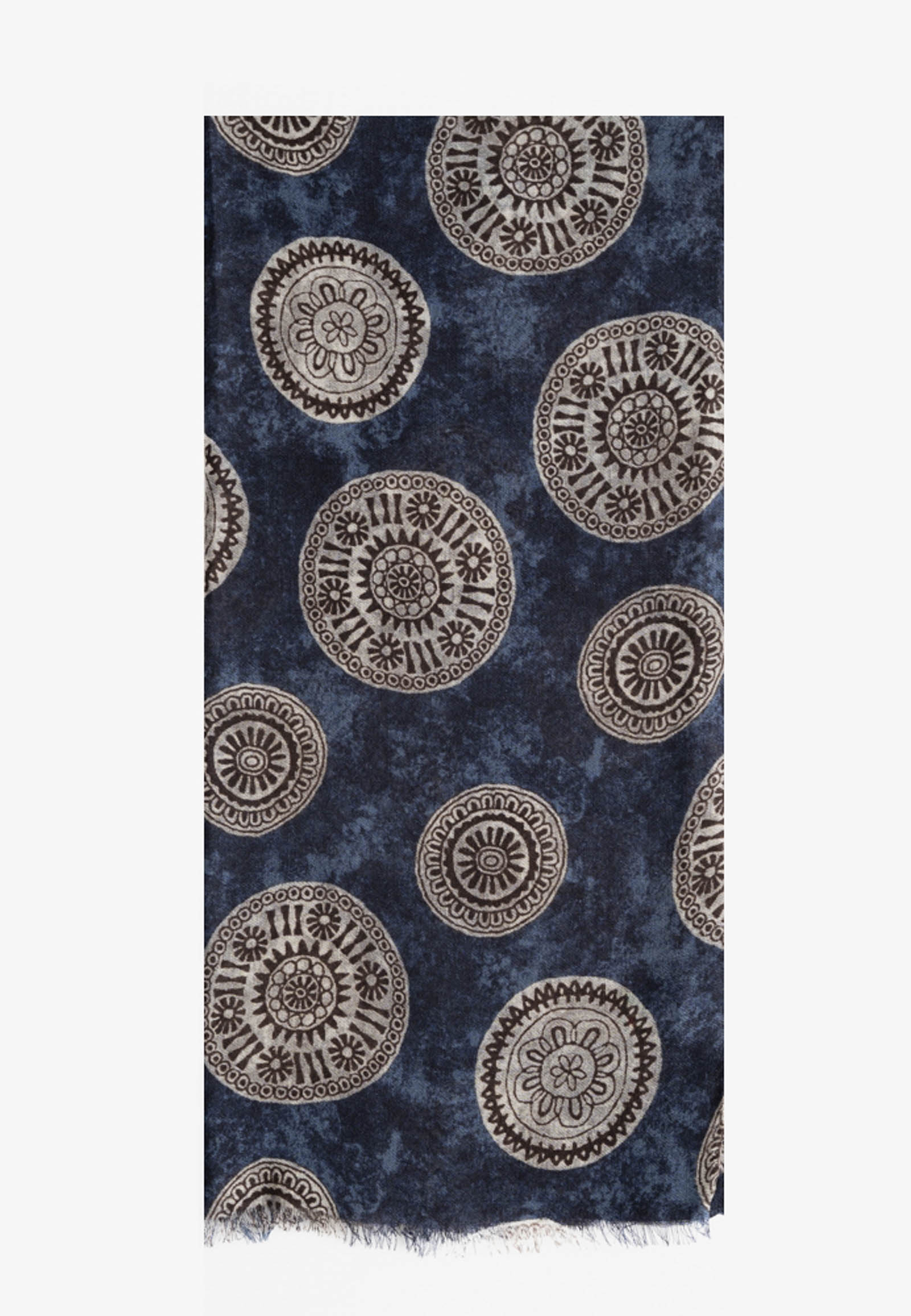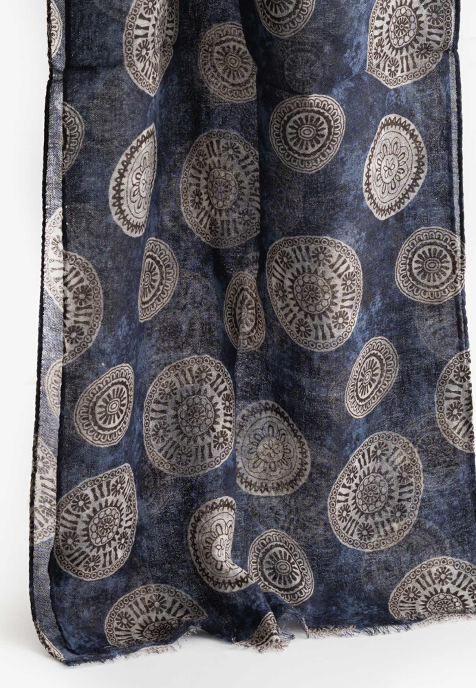 Μπλε κασκόλ από μαλλί με σχέδιο κύκλους σε γκρι χρώμα.