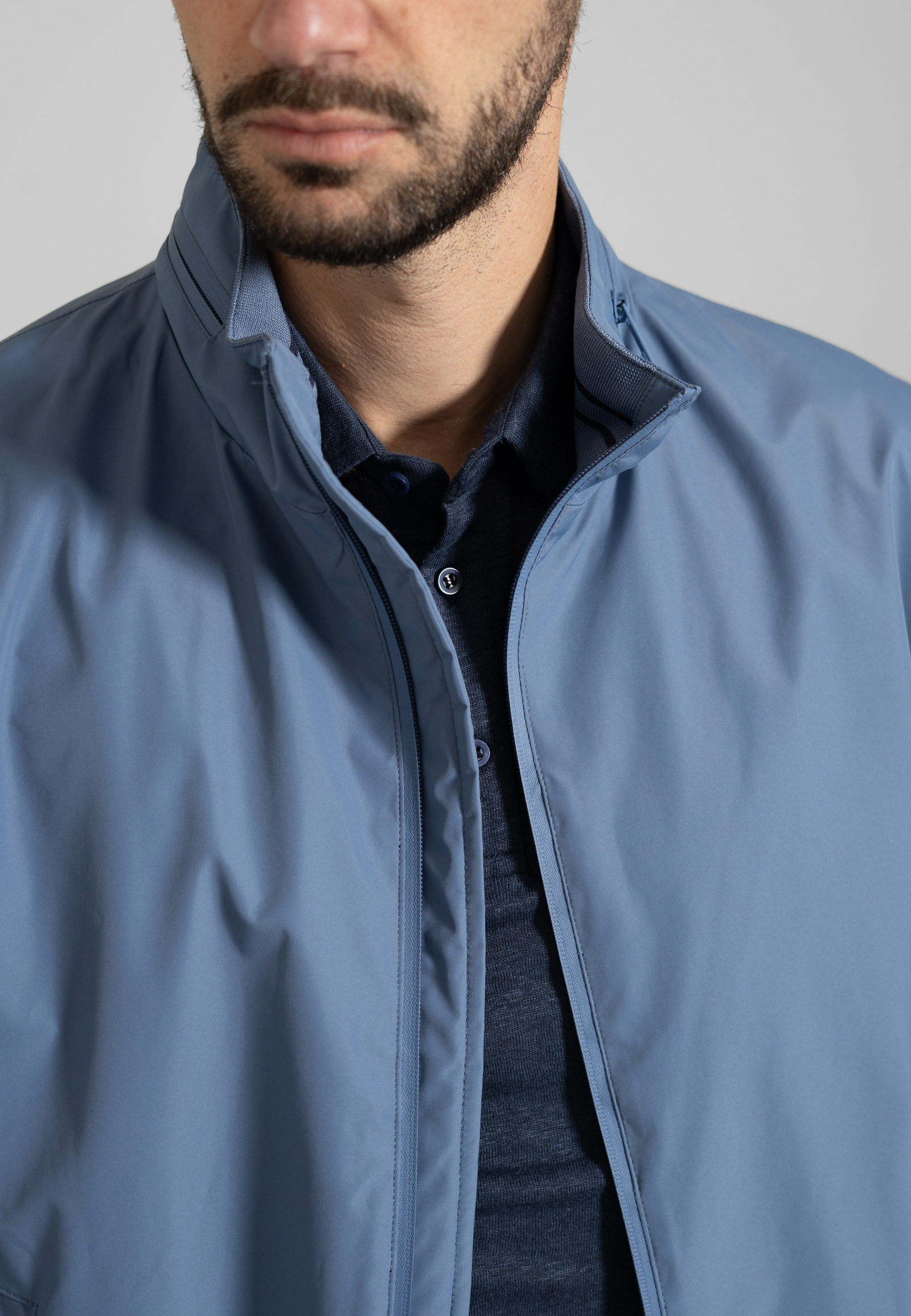 Μπουφάν bomber ελαφρύ αδιάβροχο και αντιανεμικό από τεχνικό ύφασμα υψηλής ποιότητας. Κλείσιμο με φερμουάρ, δύο τσέπες με κλείσιμο τρουκ και μία εσωτερική. Ντουμπλαρισμένο εσωτερικά με φόδρα.